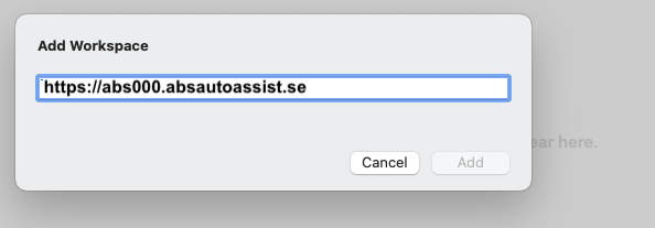 - Fyll i servernamnet ni tillhandahållit i fältet "Add Workspace".