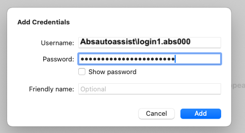 - Fyll i era användaruppgifter ni tillhandahållit och klicka på "Add".