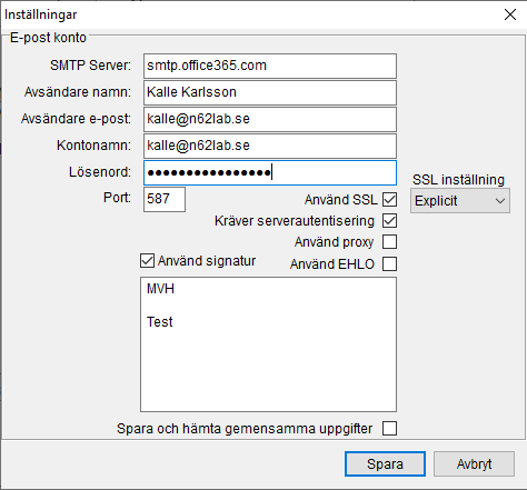 Ni måste om ni använder annan tjänst än Office 365 ta reda på korrekt uppgifter för er tjänst, serveradress för tjänstens SMTP Server, port mm.
