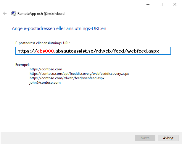 - Fyll i servernamnet ni tillhandahållit i fältet, fortsätt genom att klicka på "Nästa".