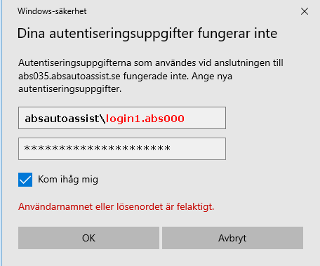 - Fylla i era användaruppgifter ni tillhandahållit och kryssa i fältet "Kom ihåg mig", klicka på "OK".